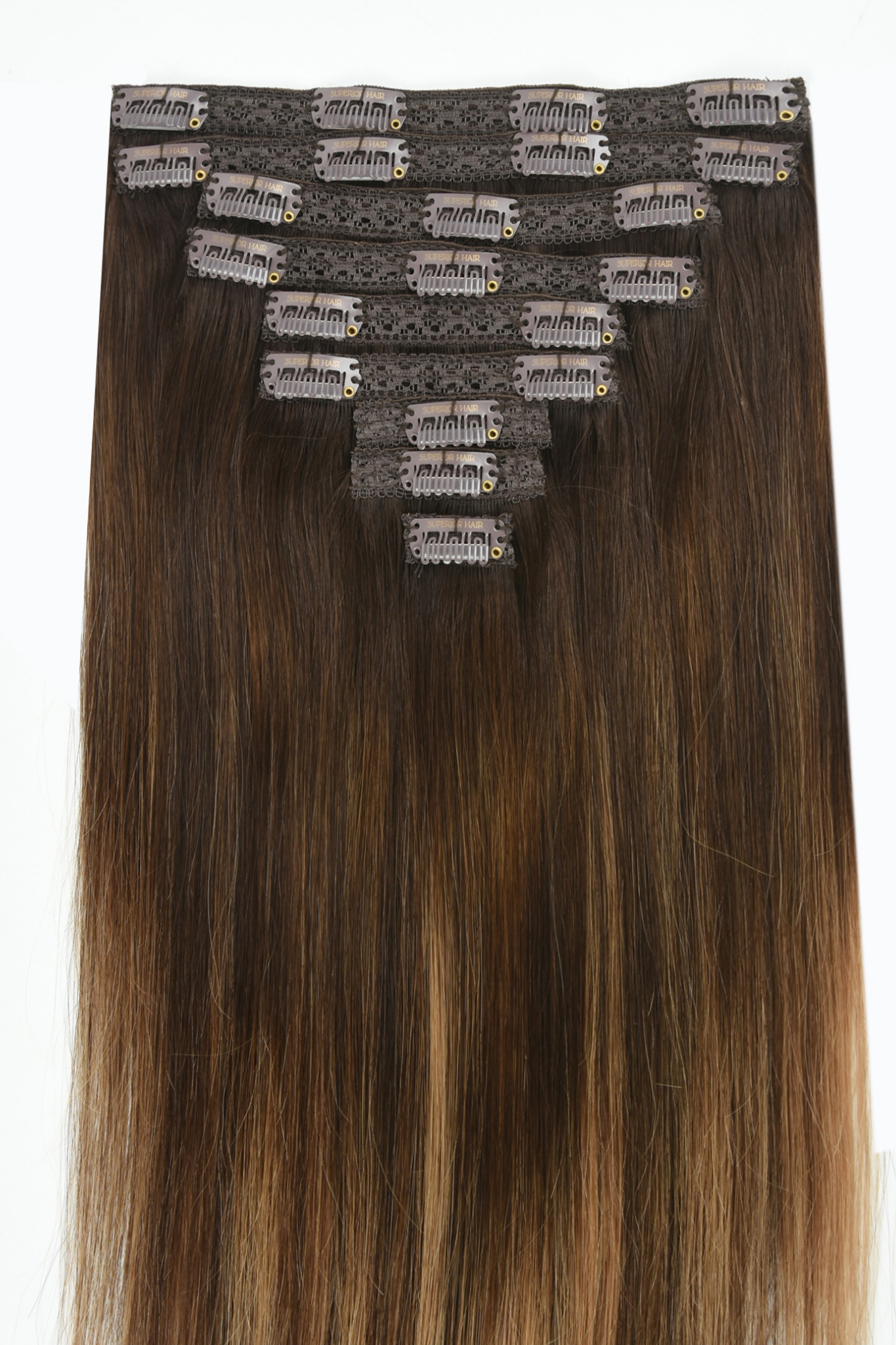 #Dark Ash Brown Balayage Classic Clip In Hair Extensions 9pcs