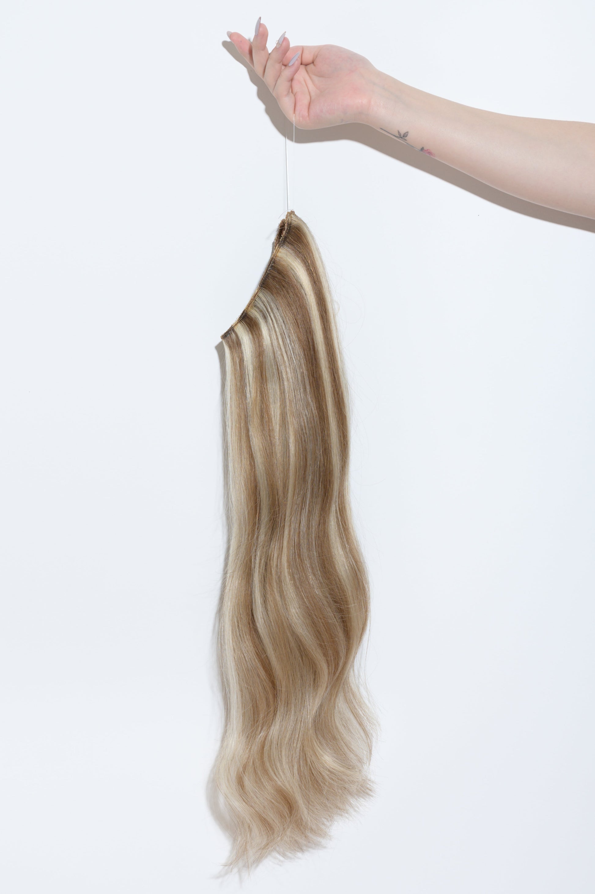 Classic halo hair extensions instantly add length and volume with a weft secured with invisible miracle wire that is placed on the crown of your head. You can choose from 6 different sized nylon wires to ensure a perfect, comfortable fit. Secure and blend your halo hair extensions with 2 clip in extensions for a quick complete look.