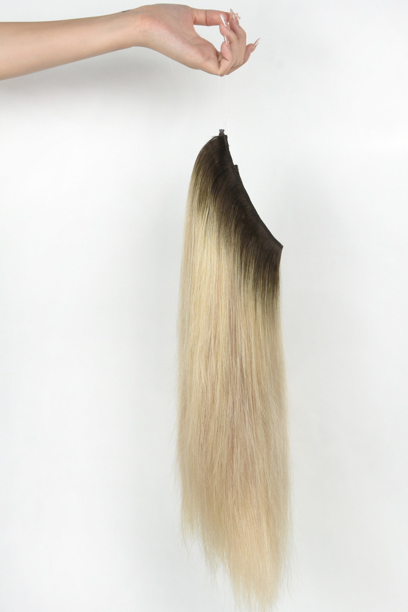 Classic halo hair extensions instantly add length and volume with a weft secured with invisible miracle wire that is placed on the crown of your head. You can choose from 6 different sized nylon wires to ensure a perfect, comfortable fit. Secure and blend your halo hair extensions with 2 clip in extensions for a quick complete look.