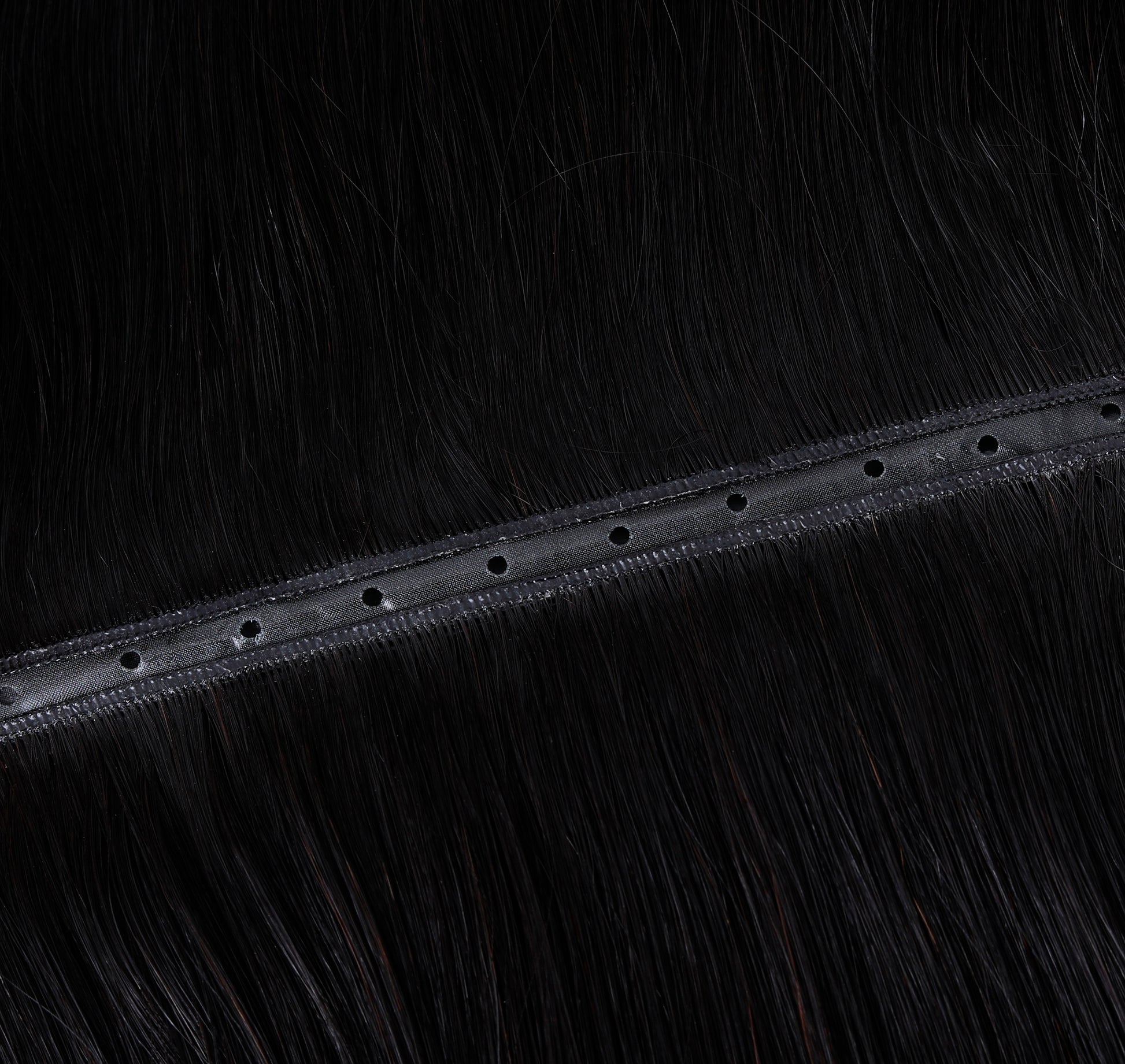 Our Butterfly Weft uses a beaded foundation with a Genius-on-Genius track for a flatter profile, cleaner tension, and easy stacking. Professional application and maintenance required.