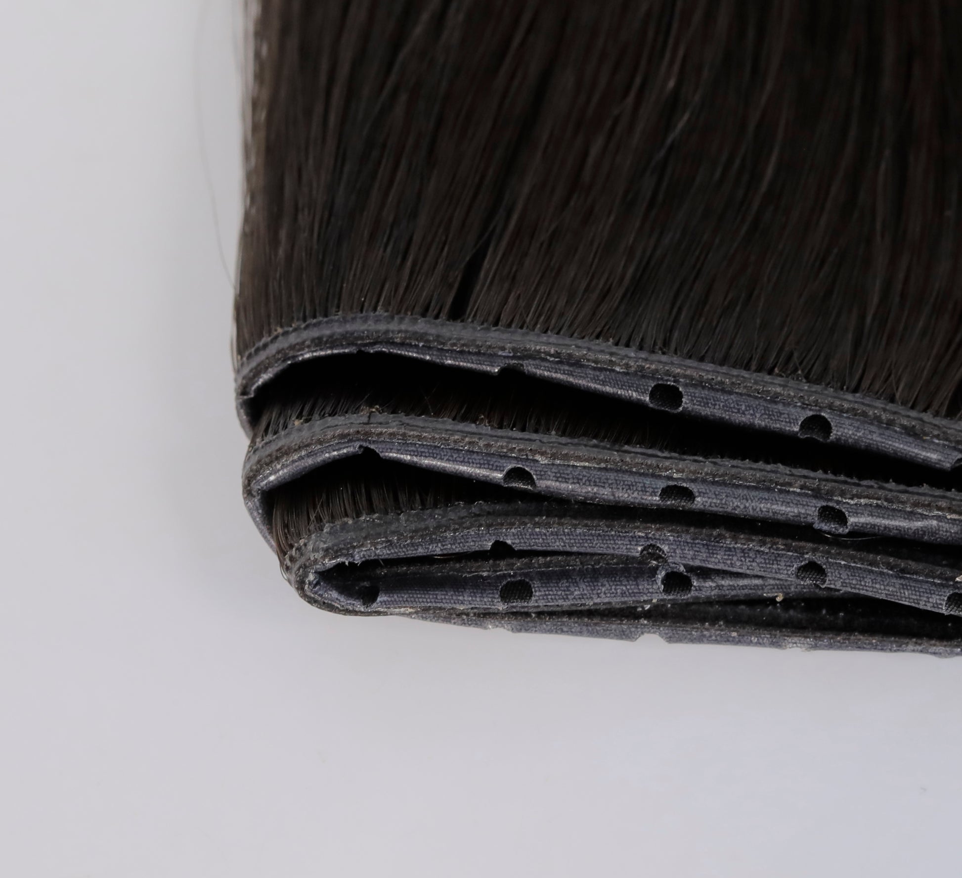 Our Butterfly Weft uses a beaded foundation with a Genius-on-Genius track for a flatter profile, cleaner tension, and easy stacking. Professional application and maintenance required.