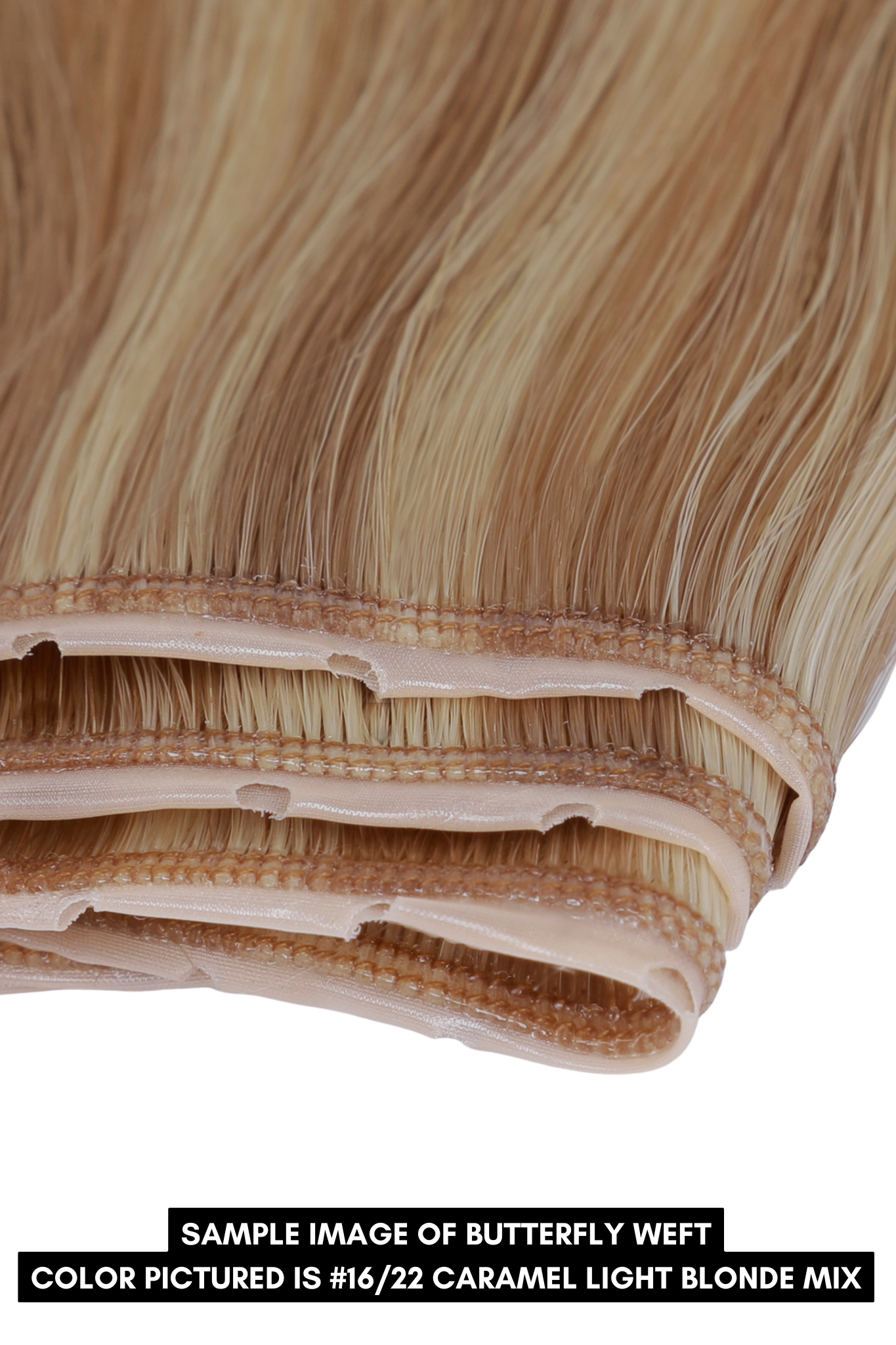 Our Butterfly Weft uses a beaded foundation with a Genius-on-Genius track for a flatter profile, cleaner tension, and easy stacking. Professional application and maintenance required.