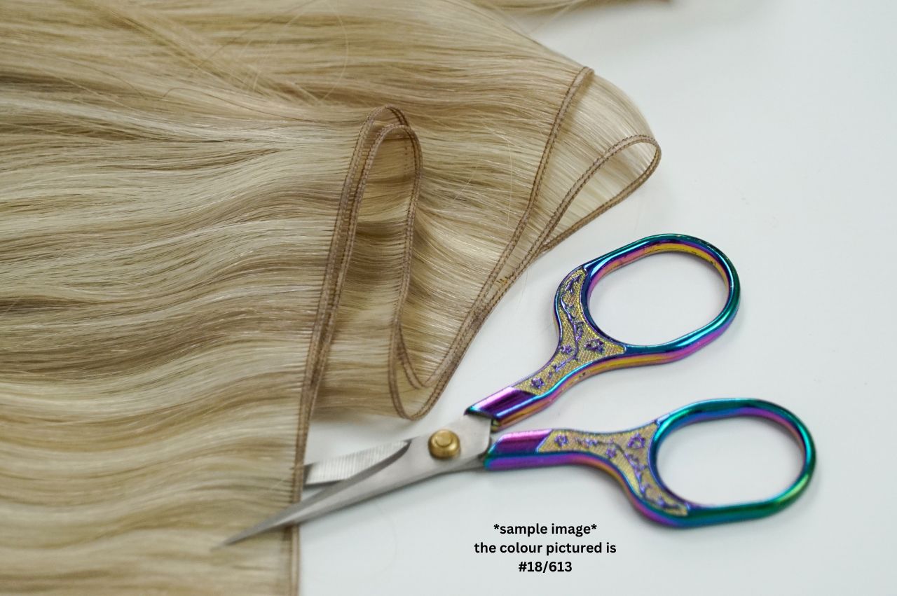 Our Traditional Weft is the original machine-made weft — sturdy and versatile with a thicker track. It can be cut to size and is ideal for volume and length. Can be beaded and sewn.