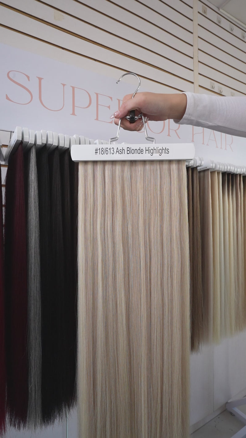 Invisi-tape in hair extensions use an injection bond skin weft that blend effortlessly into your natural hair making them virtually undetectable. These extensions are the closest tape in extensions solution you can find that looks 100% natural. These extensions are only available in 18” length.