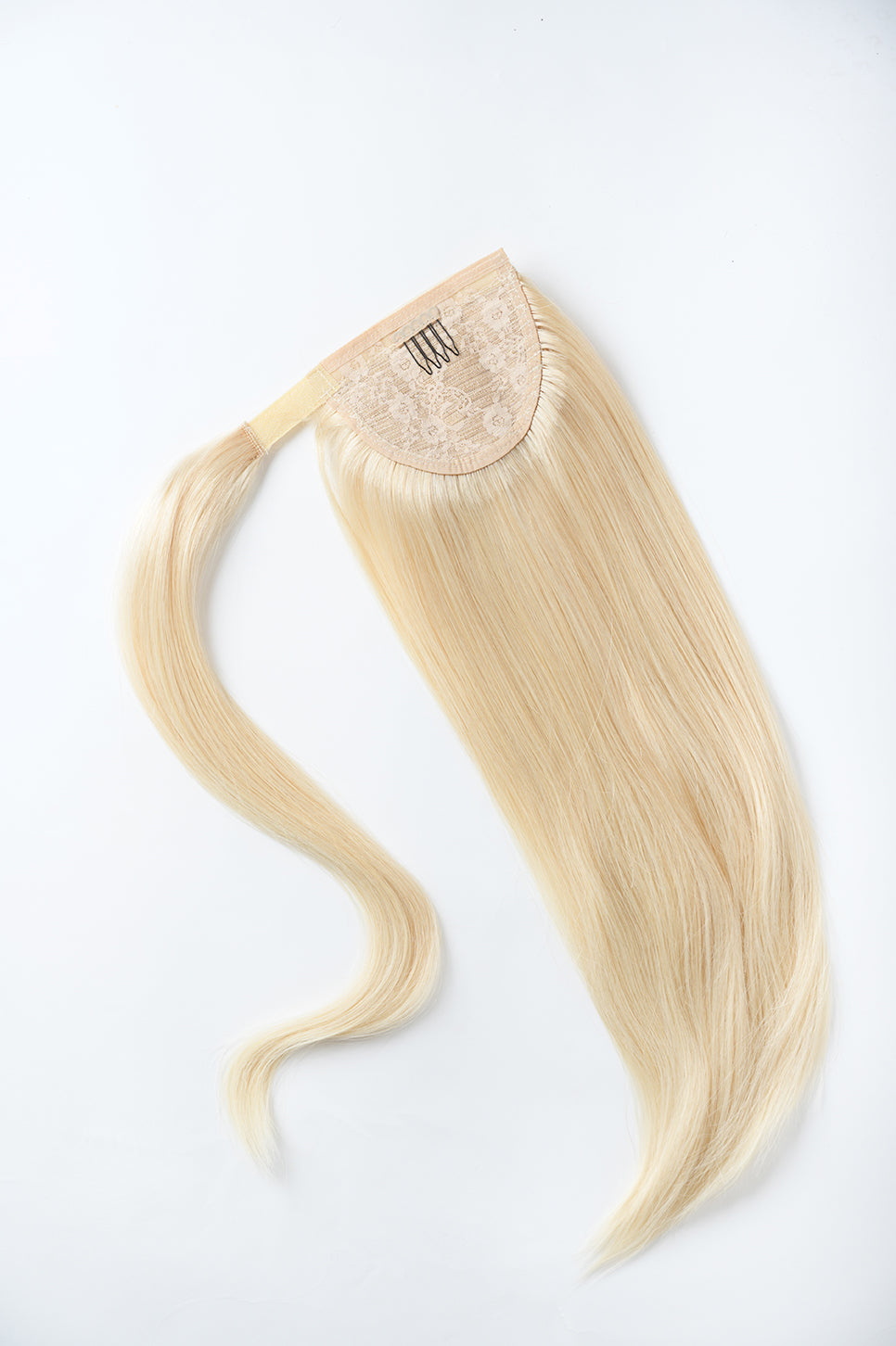 Simply clip, wrap, and you are ready to go! These easy extensions comes with a velcro base, which adheres together to secure around your existing ponytail. A long, thick strand of hair that is used to wrap around the base. Secure with two included matching bobby pins to ensure a totally seamless blend.