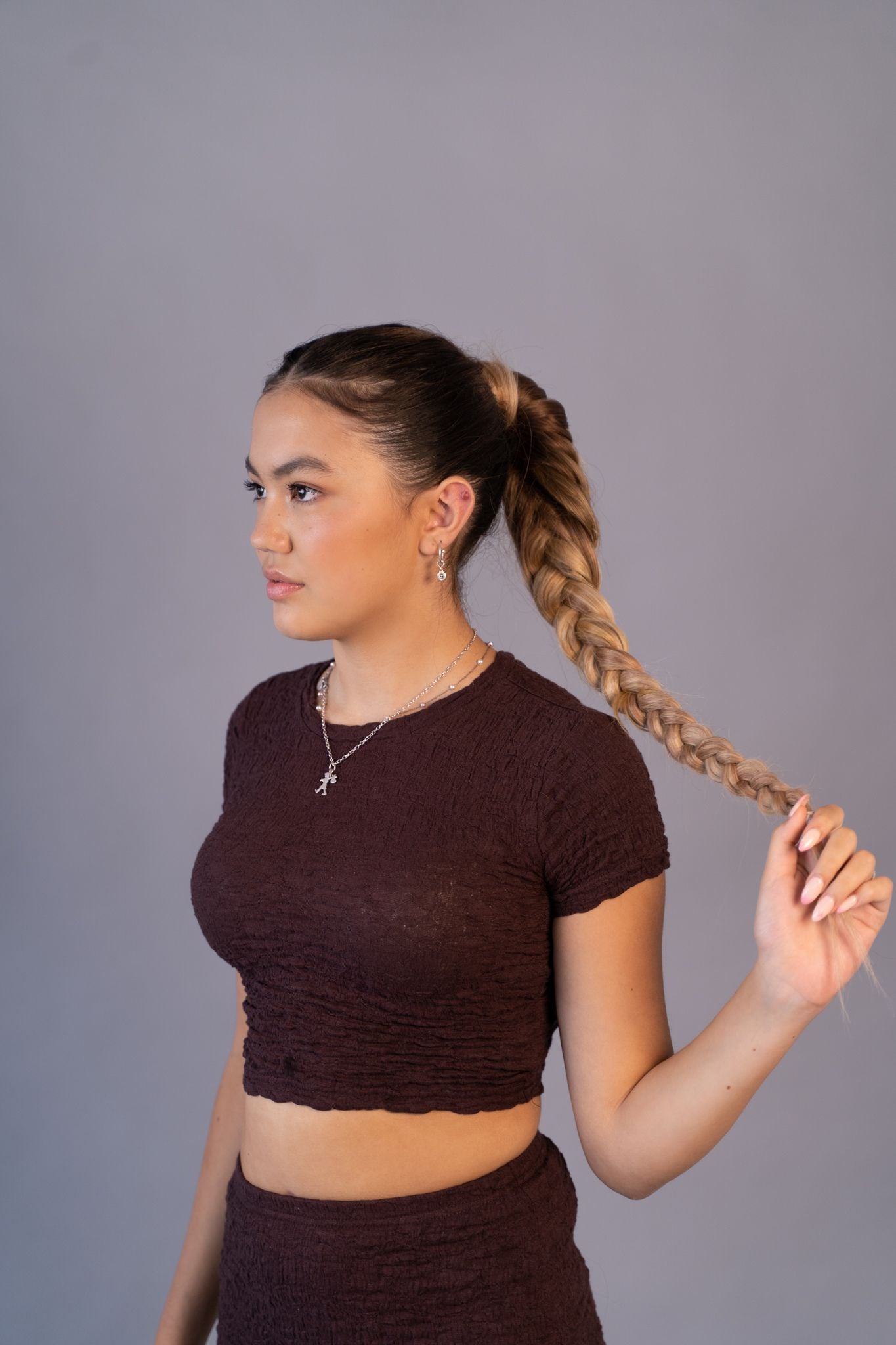 Find an extension colour that is as close as possible to your natural hair around half way down the strand, rather than at the root or tip.