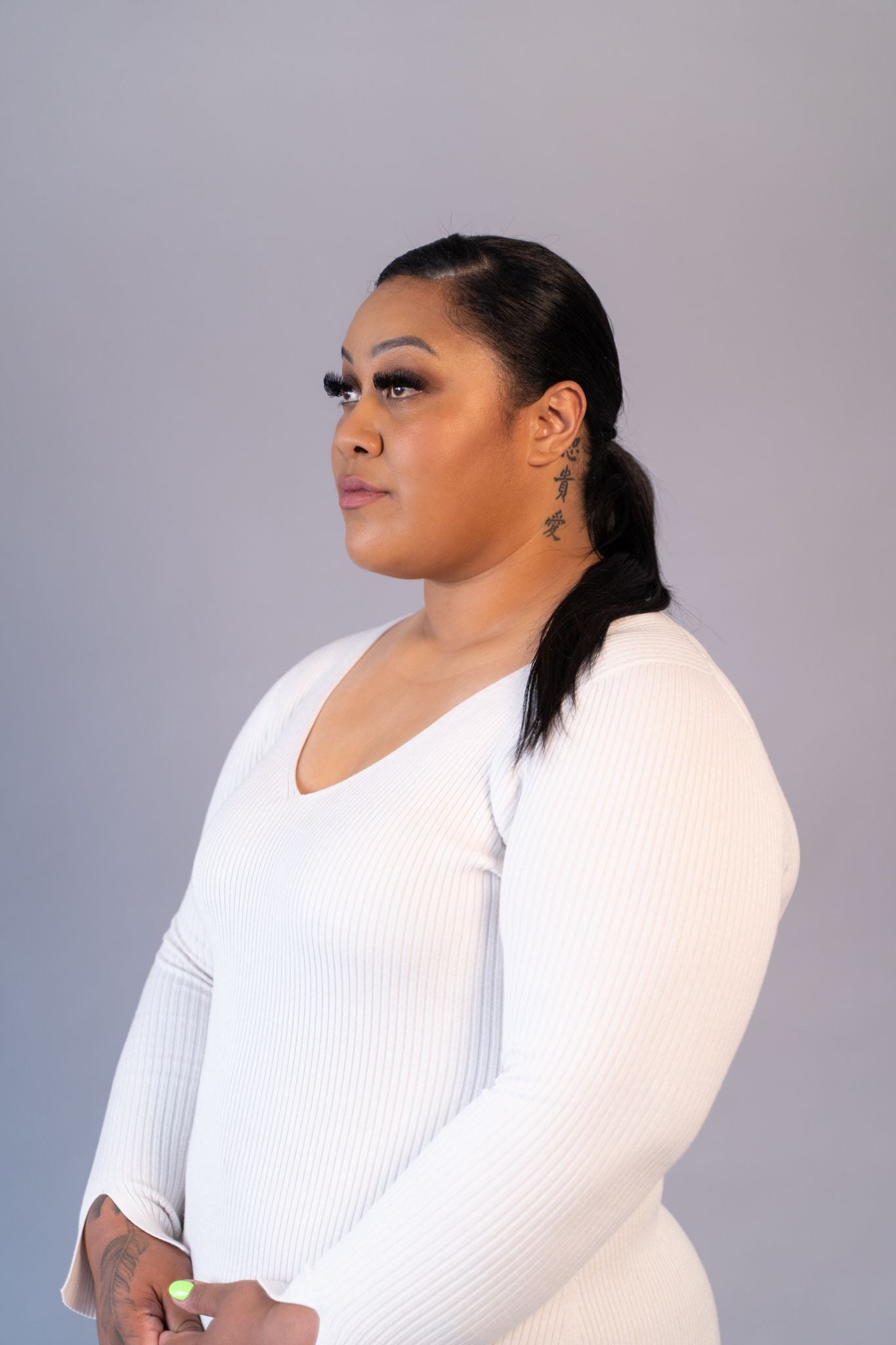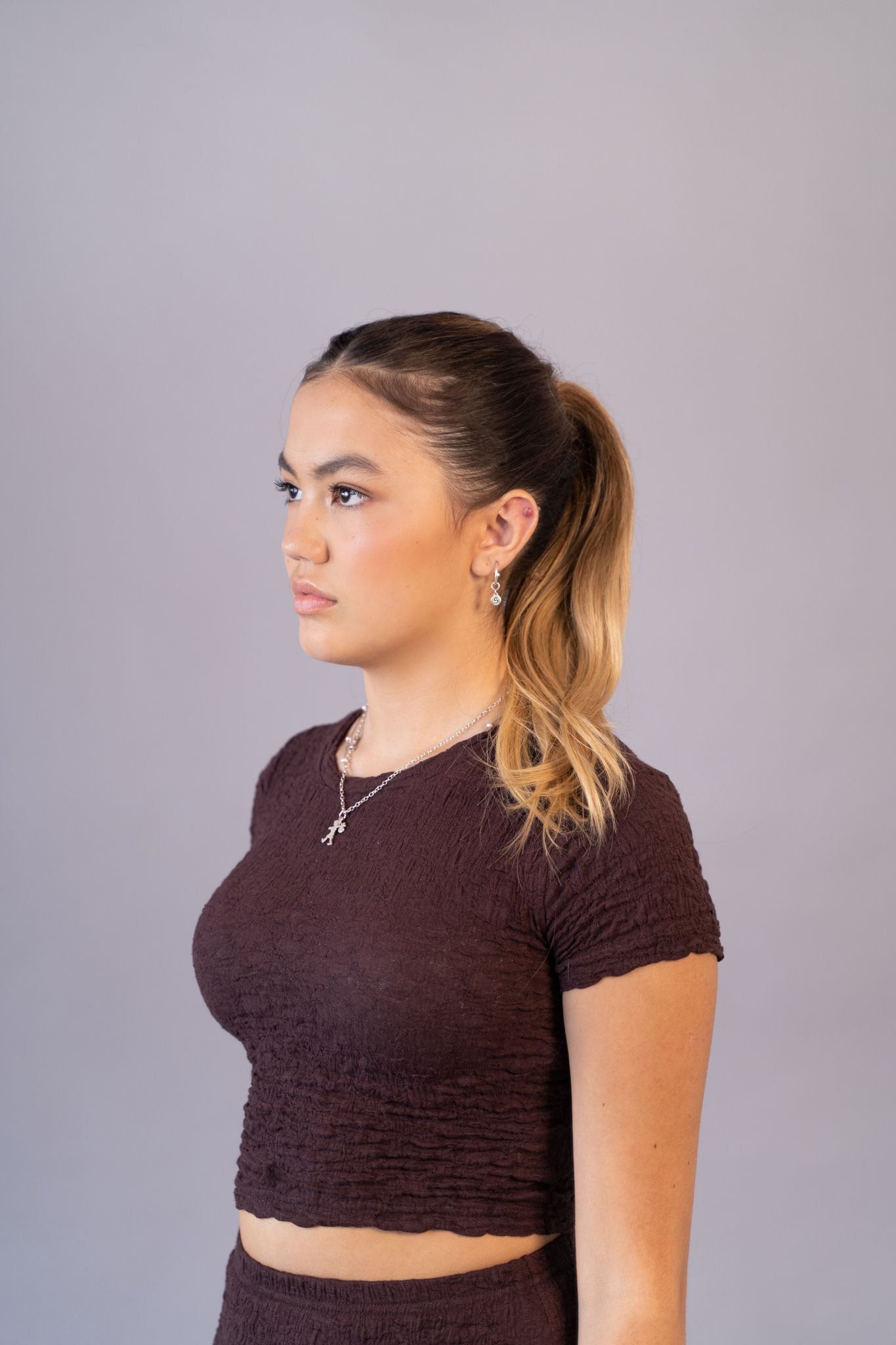 - Style your natural hair into a bun or ponytail.