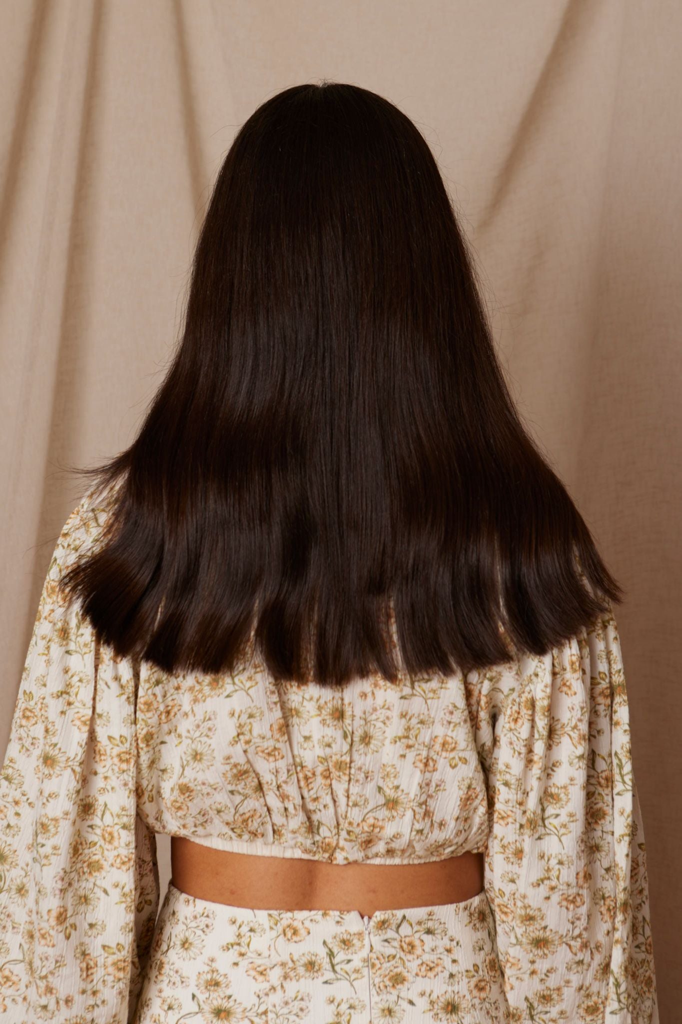 Find an extension colour that is as close as possible to your natural hair around half way down the strand, rather than at the root or tip.