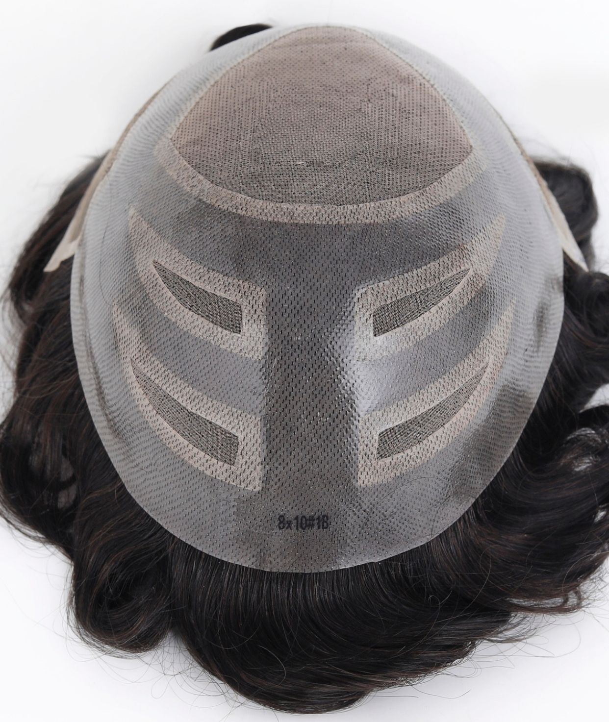 This premium hair system features a 0.06mm super thin transparent skin base with V-looped hair all over, ensuring an undetectable and ultra-lightweight fit. The 8”x10” base size provides ample coverage, while the standard front contour creates a natural-looking hairline. With a medium-light density (100%), this system offers a breathable and realistic feel, blending seamlessly with your scalp.