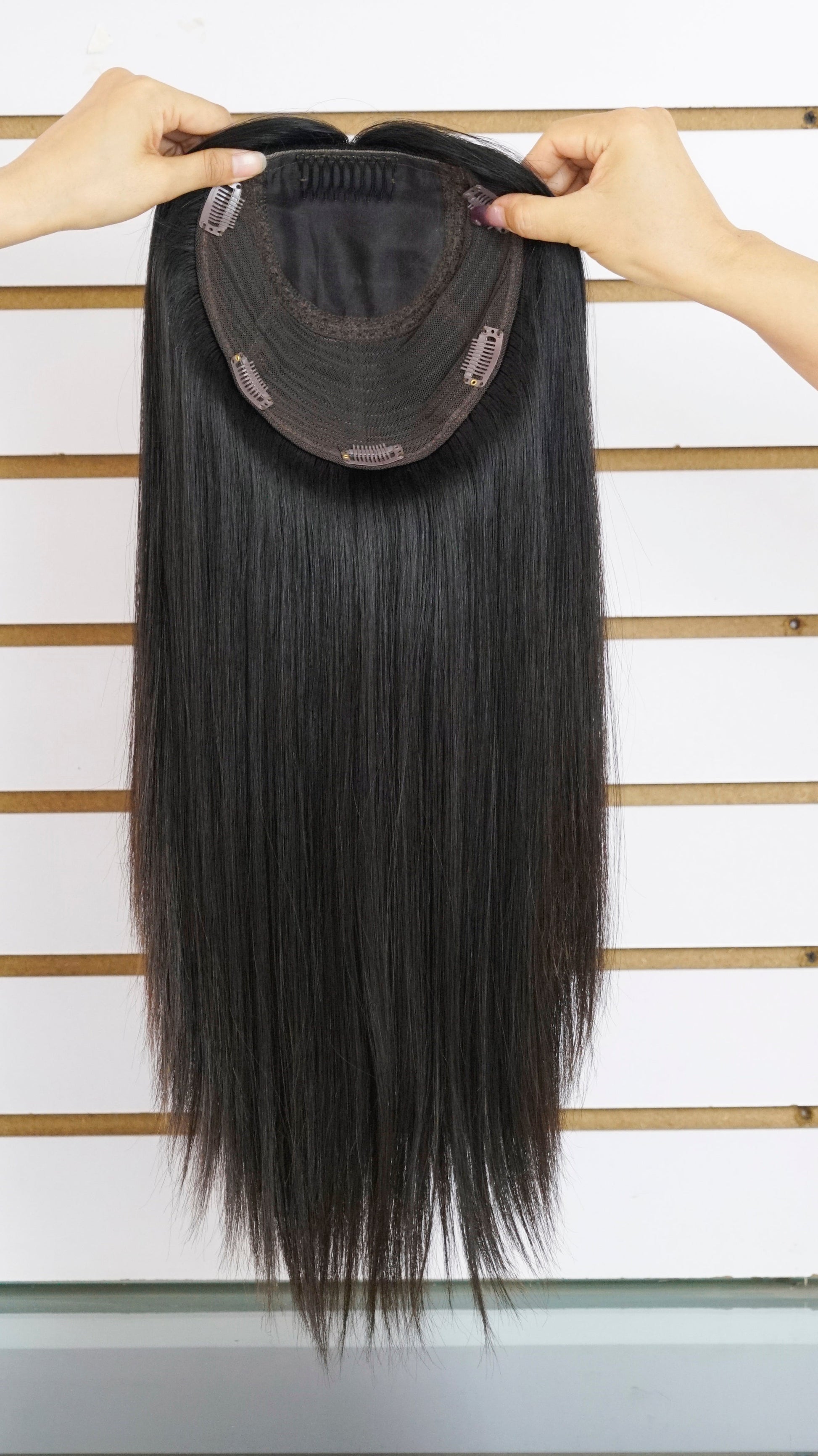 Available in base size of 5.5" x 6" in 12 Inch and 18 Inch and in hair lengths ranging from 12”-18”, our 100% Remy Human Hair Toppers provide the perfect blend of volume, coverage, and natural movement. Designed specifically for those experiencing hair thinning at the crown, these toppers are crafted with a breathable silk base for unwavering comfort and long-lasting wear. The silk lace crown allows for complete styling flexibility—part it anywhere to create your desired look.