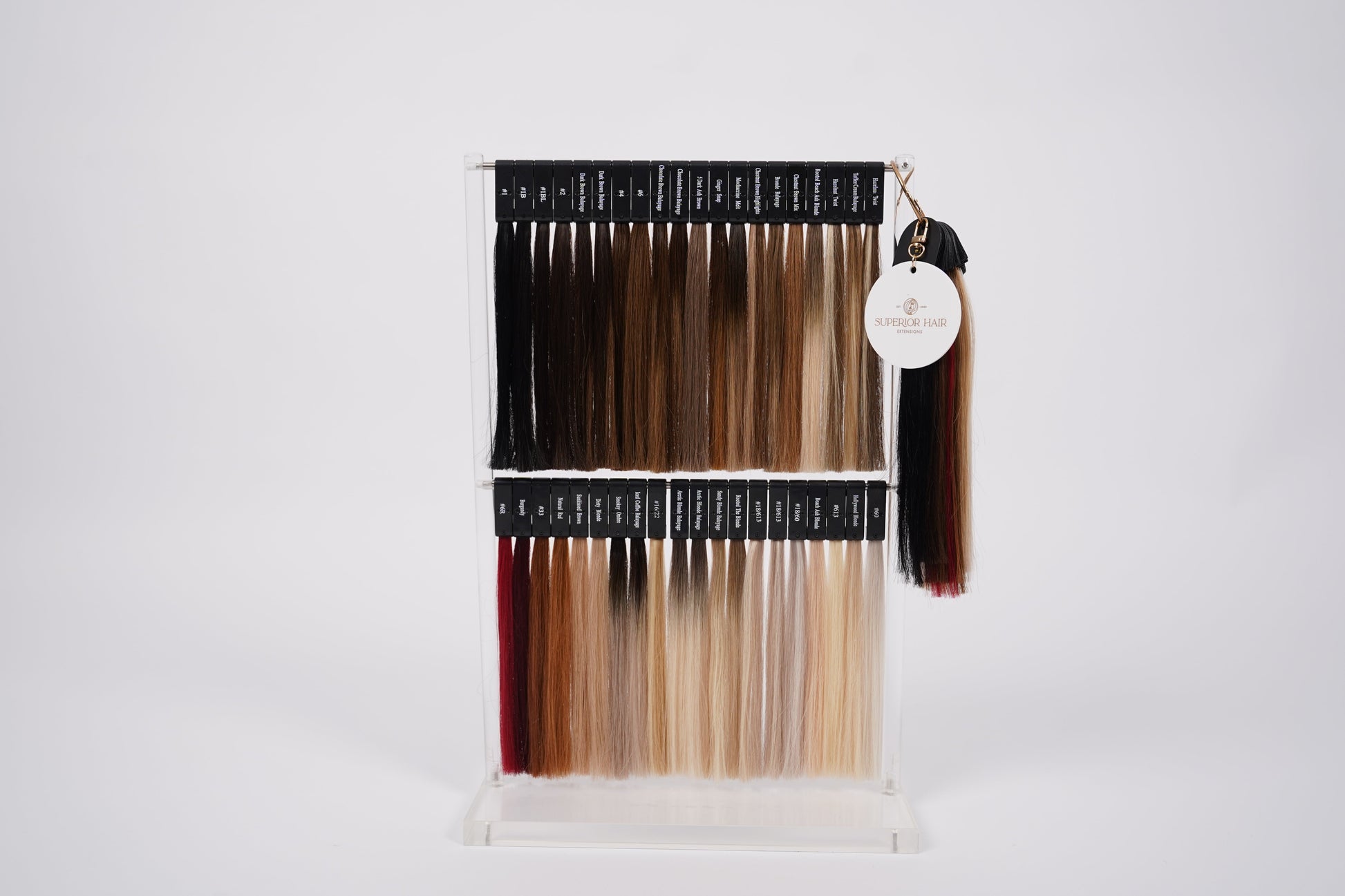 The Superior Hair Color Stand is designed for professional salons, stylists, educators, and training academies who require a clean, organised way to display their extension colour range during consultations or education.