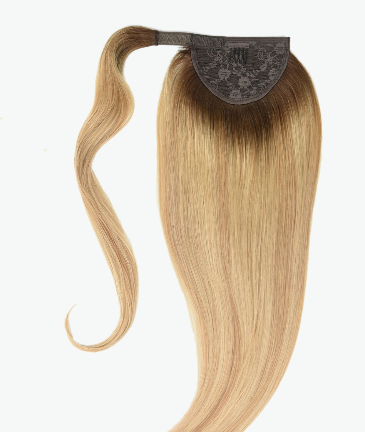 Simply clip, wrap, and you are ready to go! These easy extensions comes with a velcro base, which adheres together to secure around your existing ponytail. A long, thick strand of hair that is used to wrap around the base. Secure with two included matching bobby pins to ensure a totally seamless blend.