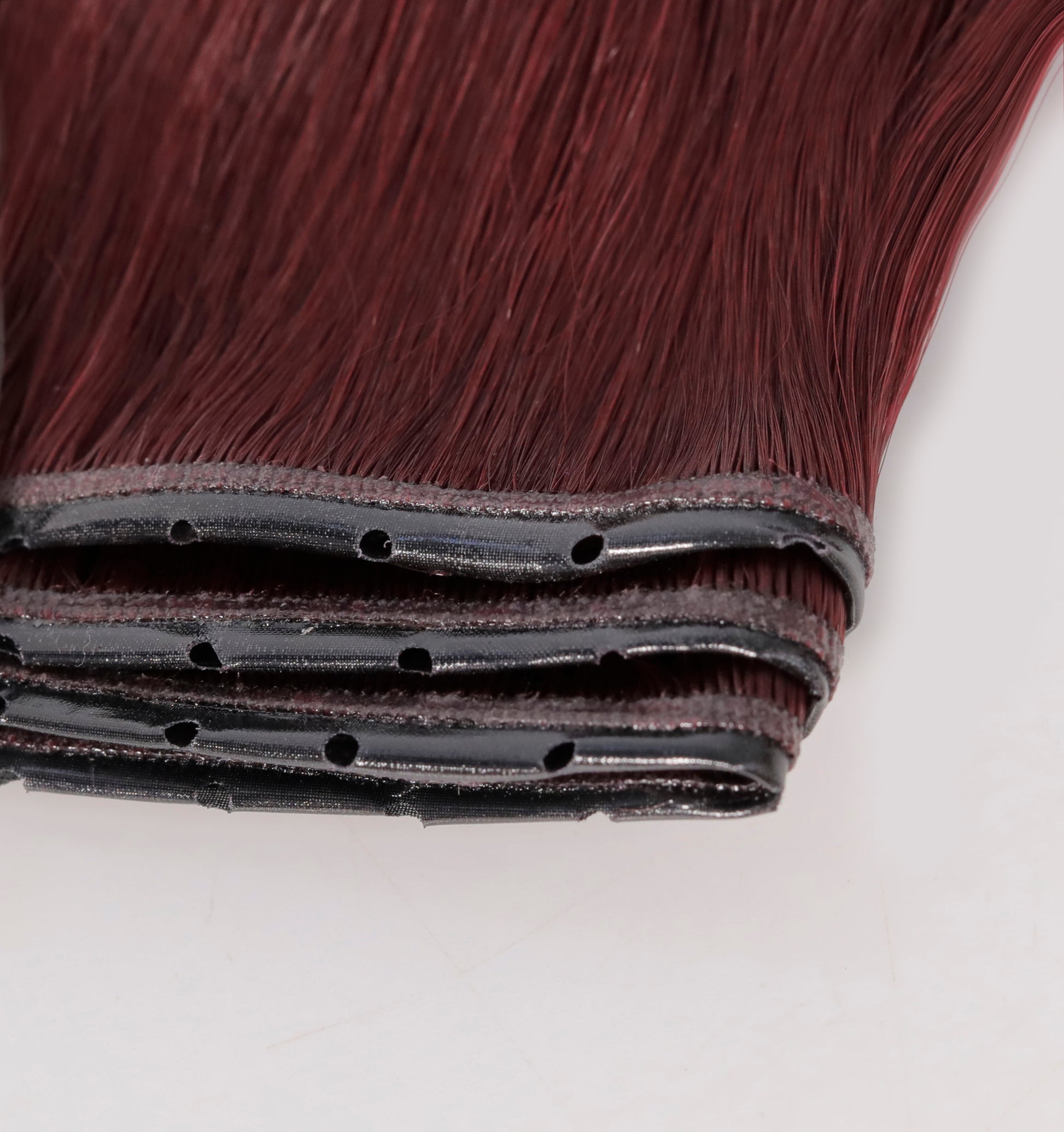 These semi-permanent extensions feature a flat, flexible PU base with strategically placed “butterfly holes.” Each set of two holes is used per microbead, allowing your stylist to anchor the weft securely while distributing weight evenly, reducing tension and increasing comfort — especially for fine or fragile hair.